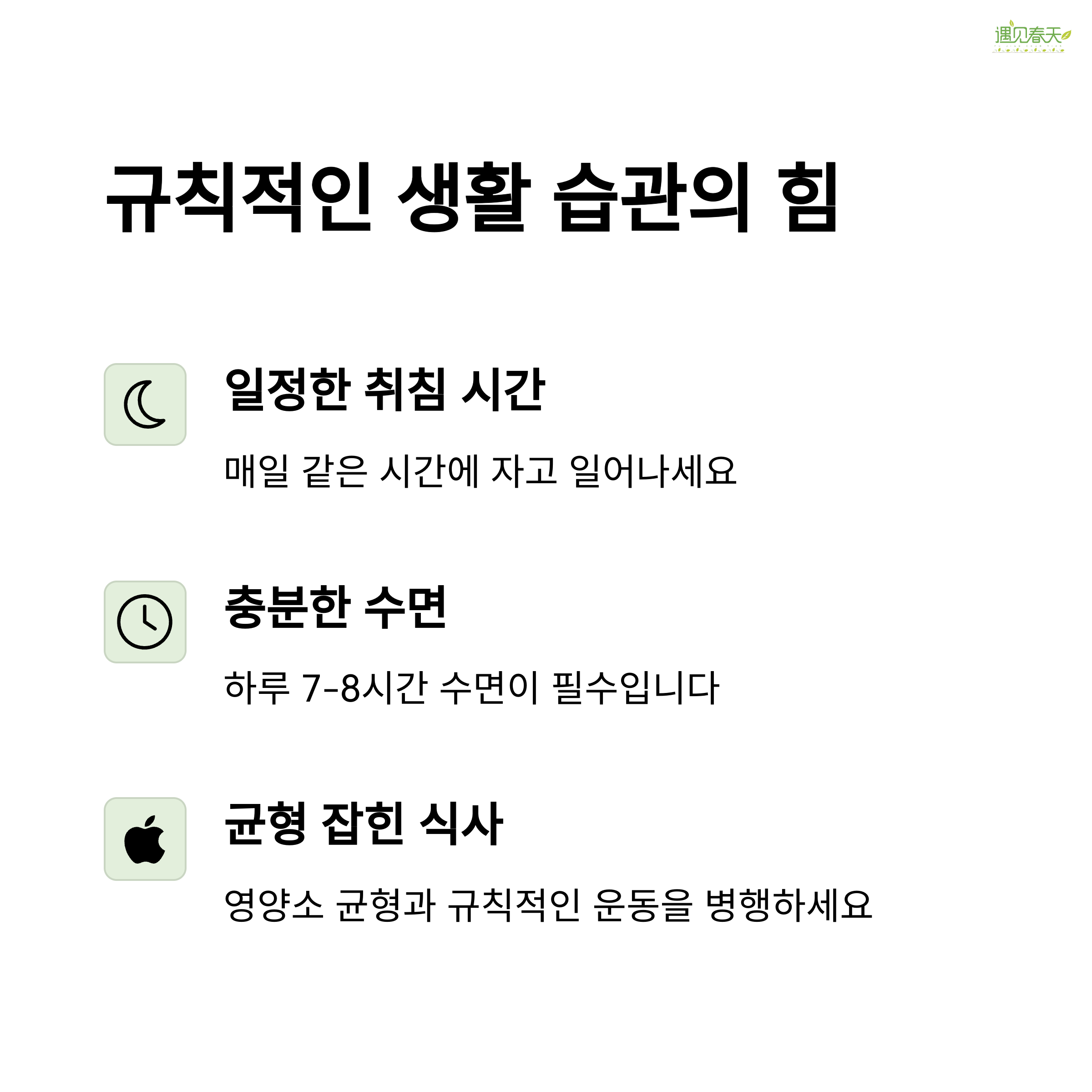 규칙적인 운동과 건강한 식습관은 집중력을 높이는 데 중요한 역할을 합니다. 신체 활동을 하면 뇌로 가는 혈류가 증가하고, 스트레스 호르몬이 감소하여 학습 능력이 향상됩니다. 또한, 오메가-3가 풍부한 음식(견과류, 생선 등)을 섭취하면 기억력과 집중력이 개선될 수 있습니다.충분한 수면을 취하는 것도 매우 중요한데, 수면 부족은 기억력과 학습 효율을 떨어뜨리므로 하루 7~8시간 이상의 숙면을 권장합니다.