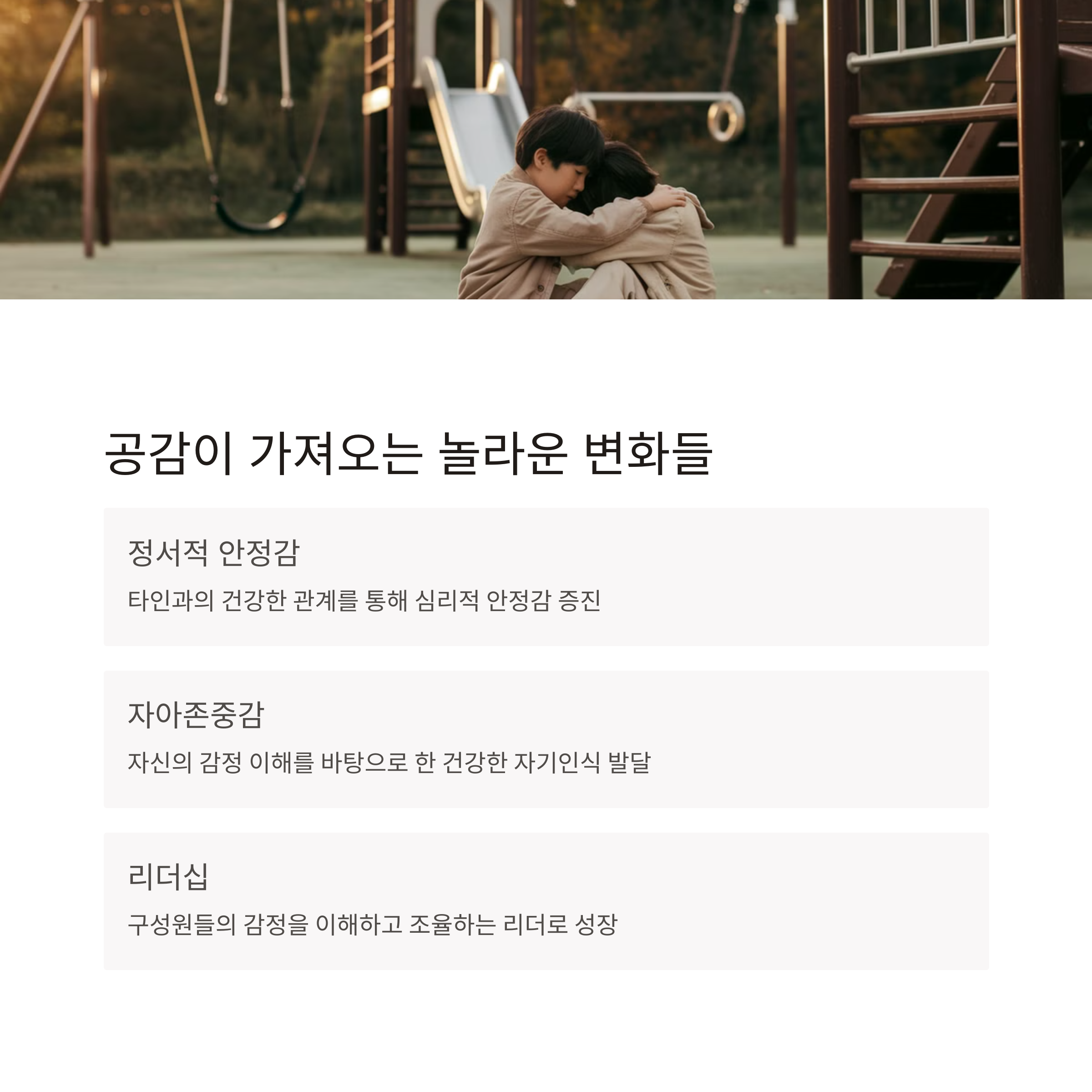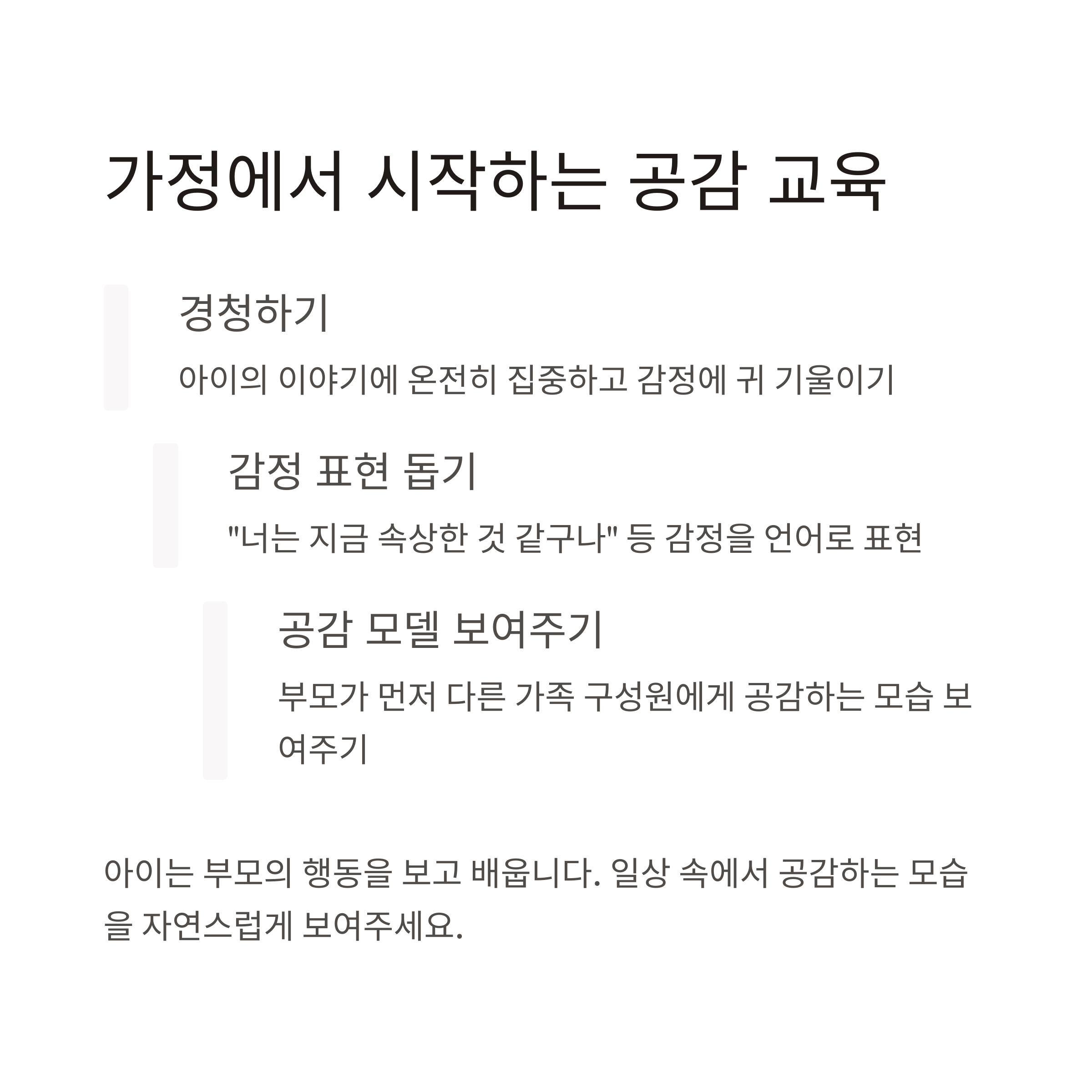 오늘은 공감 교육이 아이의 대인관계에 얼마나 깊은 영향을 주는지를 함께 알아보았어요.