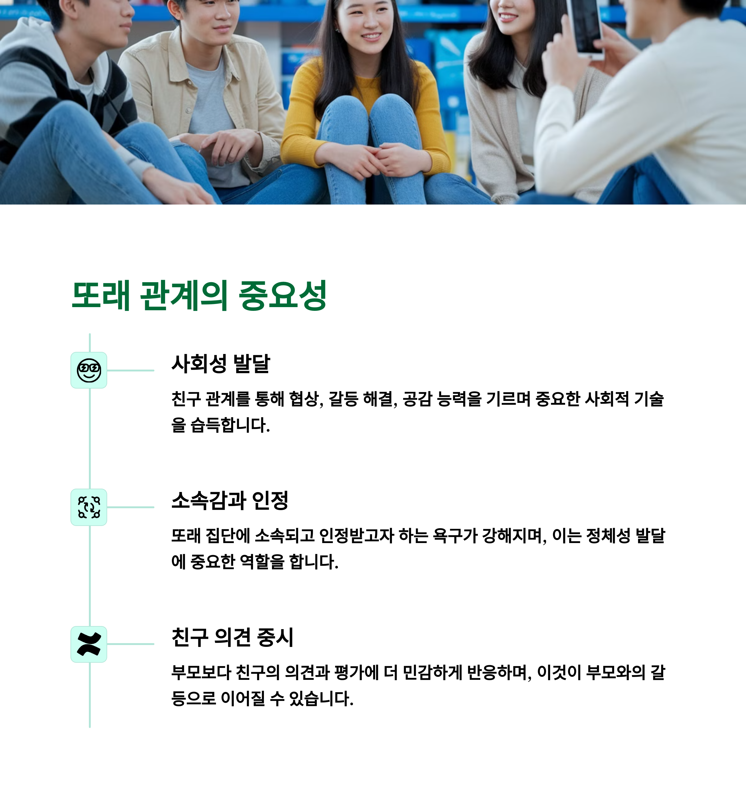 사춘기는 부모와 자녀 모두에게 쉽지 않은 시기입니다. 그러나 이 시기를 어떻게 보내느냐에 따라 아이의 미래가 달라질 수 있어요. 아이가 보내는 신호를 민감하게 느끼고, 비난보다는 이해로 접근하는 태도가 중요합니다. 한 발짝 물러나 감정을 조율하고, 아이가 안심하고 다가올 수 있는 공간을 만들어 주세요. 아이는 사랑받고 있다는 믿음 속에서 건강하게 성장합니다. 여러분의 따뜻한 시선과 귀 기울이는 자세가 그 무엇보다 큰 힘이 됩니다.