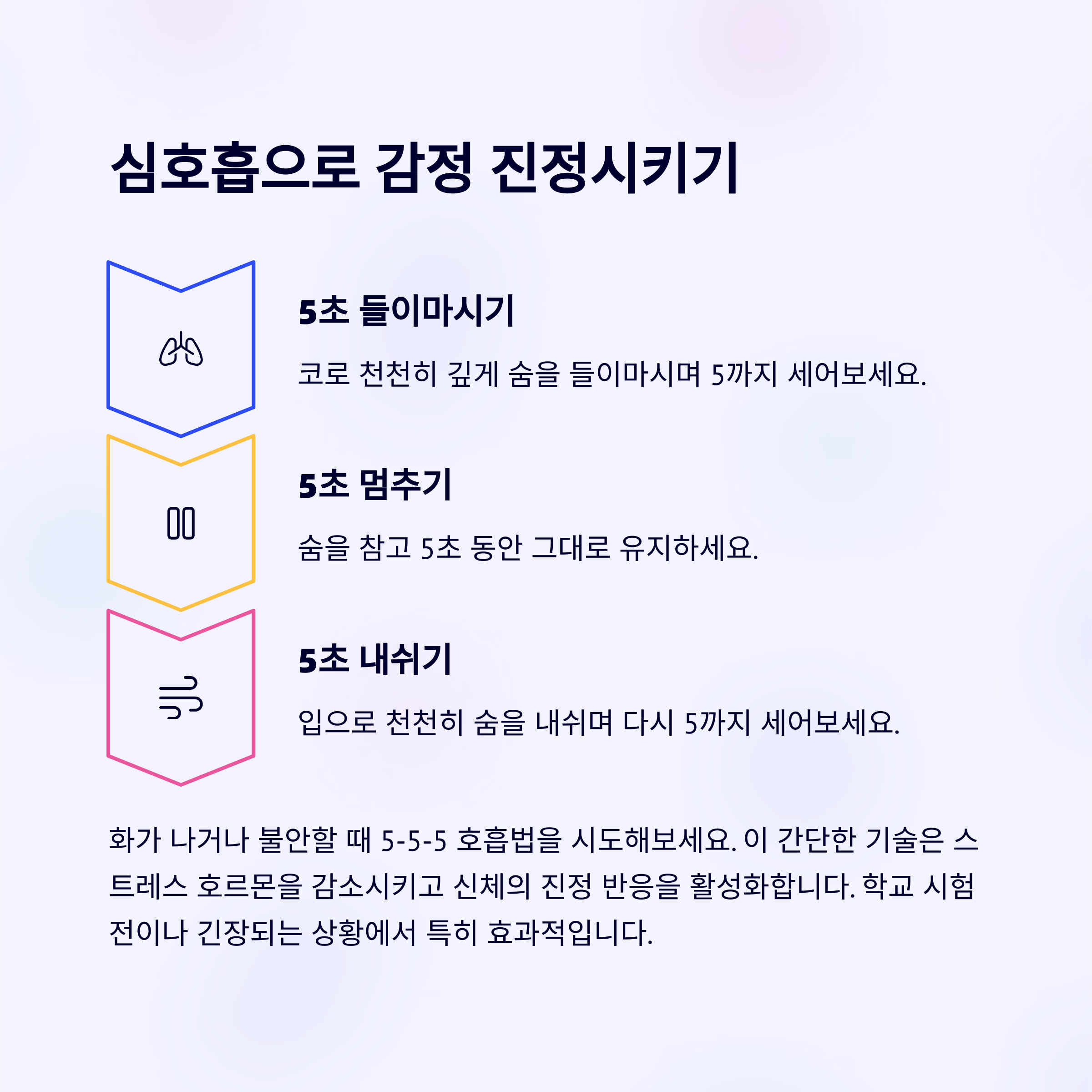 이런 연습을 반복하다 보면 점점 감정을 조절하는 힘이 길러집니다.