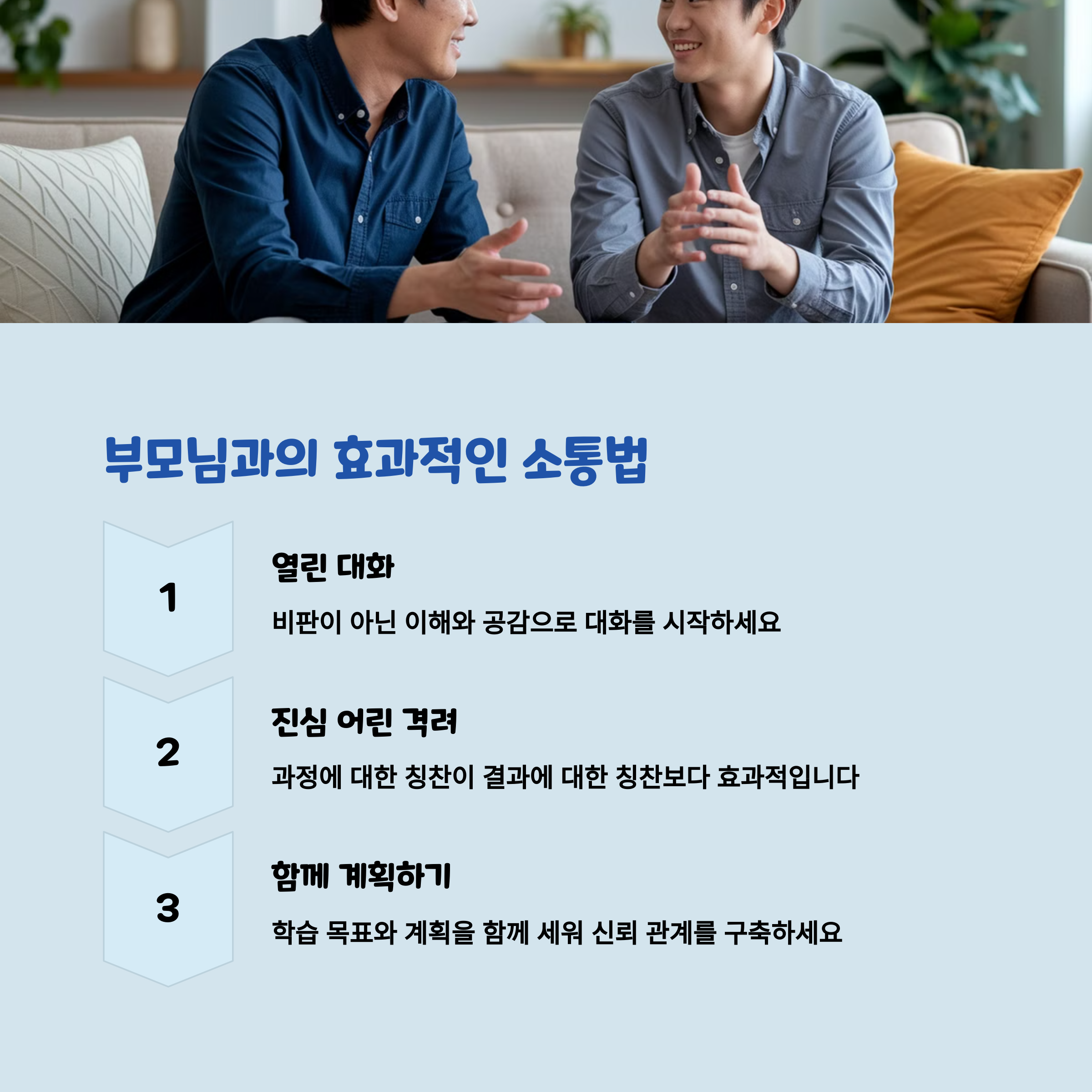 부모는 자녀의 학습 습관 형성에 중요한 역할을 합니다. 자녀가 학습에 흥미를 느끼고 꾸준히 공부할 수 있도록 지원하는 것이 부모의 역할입니다. 그러나 이를 위해서는 단순히 공부하라고 강요하는 것보다, 긍정적인 대화와 지원이 필요합니다.