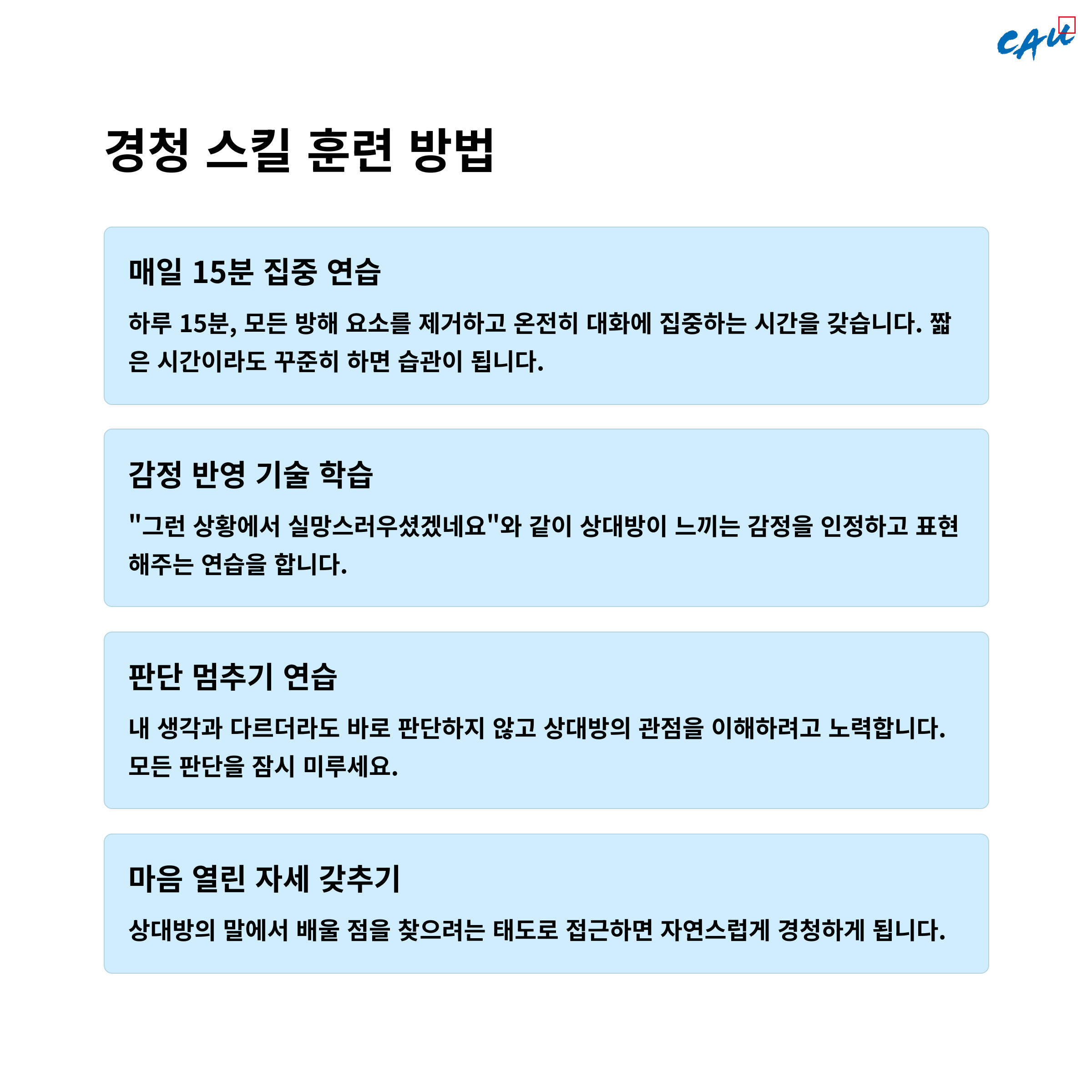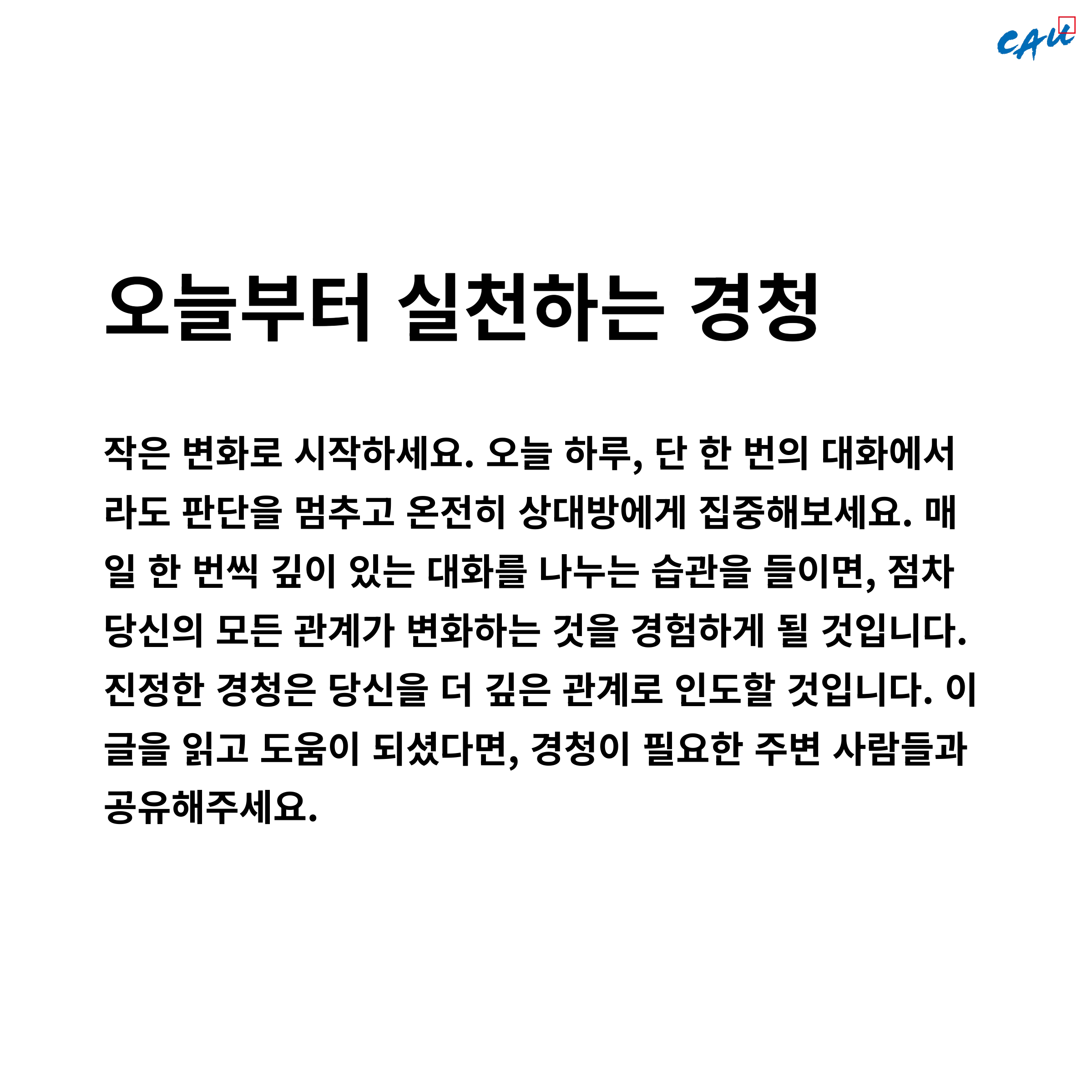 모든 인간관계에서 경청은 갈등을 줄이고 이해를 높이는 역할을 합니다.