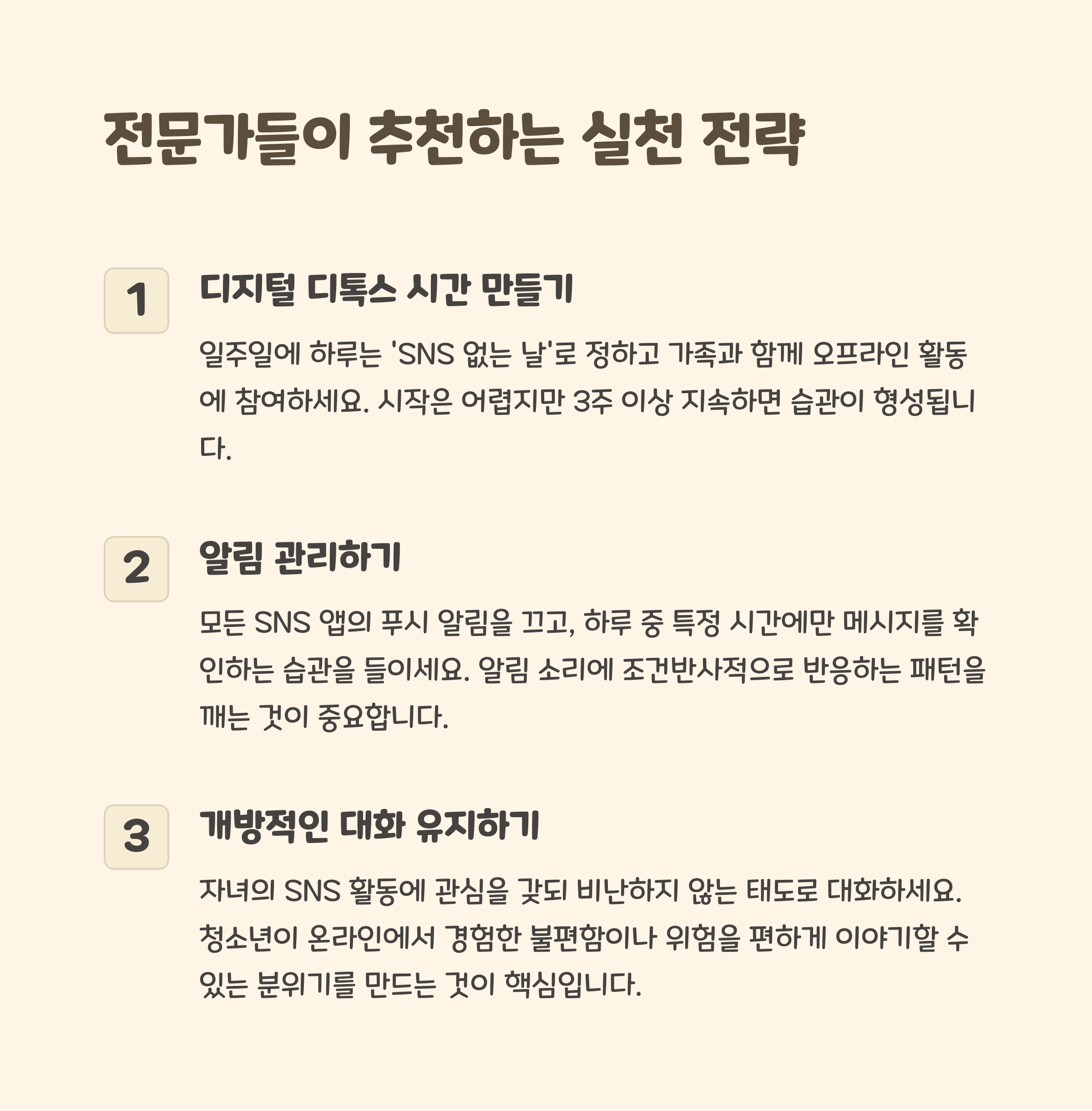 문제를 인식하고 건강한 사용 습관을 만들어야 합니다.