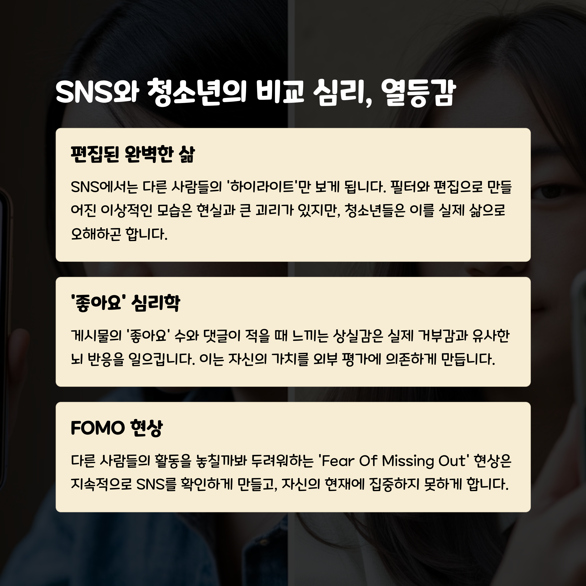 3. 청소년의 자아 형성에 부정적 영향을 줄 수 있습니다.
